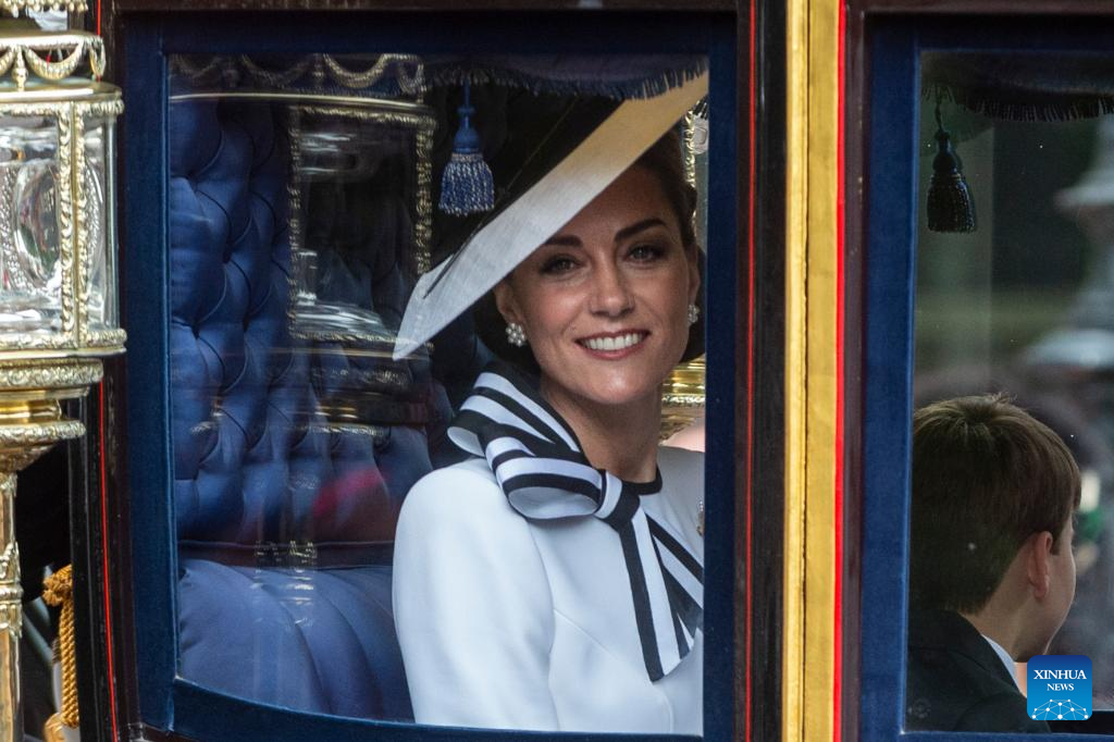 Britain's Catherine, Princess of Wales, rides a royal carriage during the Trooping the Colour parade to honour Britain's King Charles III on his official birthday in London, Britain, on June 15, 2024. (Photo by Stephen Chung/Xinhua)
