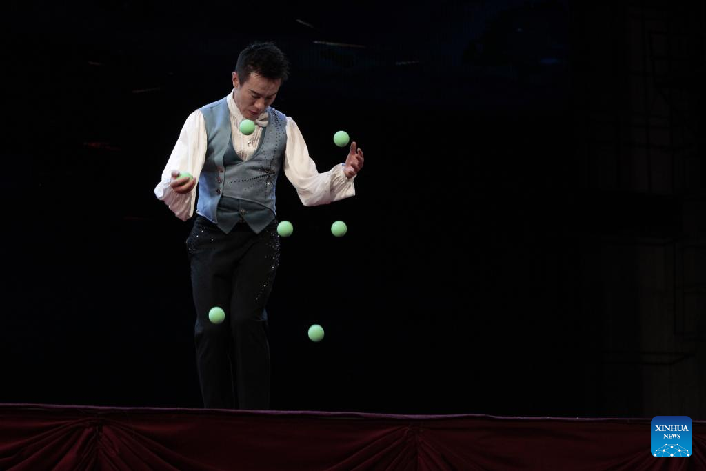 A Chinese artist performs during a Chinese cultural show in Phnom Penh, Cambodia on June 15, 2024. The "Family China" art troupe of the All-China Federation of Returned Overseas Chinese on Saturday performed classic Peking Opera, traditional dances, music, and acrobatics here, attracting approximately 3,500 spectators.