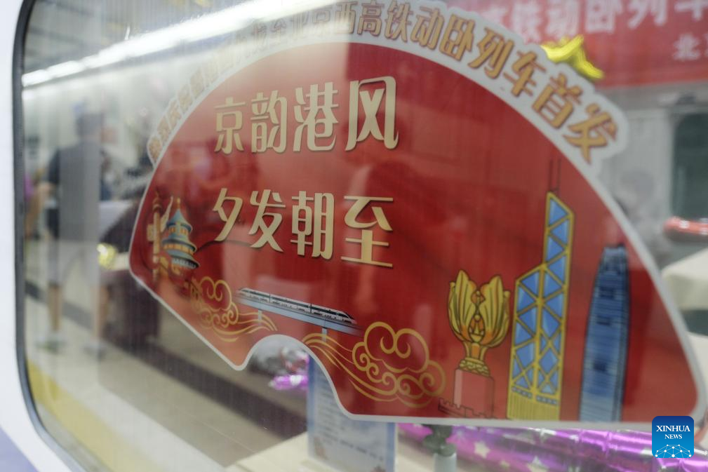 The high-speed sleeper train D909 bound for Hong Kong's West Kowloon Station departs from Beijing West Railway Station in Beijing, capital of China, June 15, 2024. High-speed sleeper trains linking Beijing and Shanghai with Hong Kong commenced operations on Saturday.