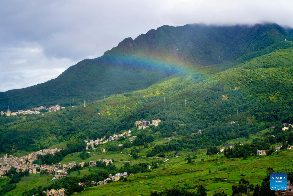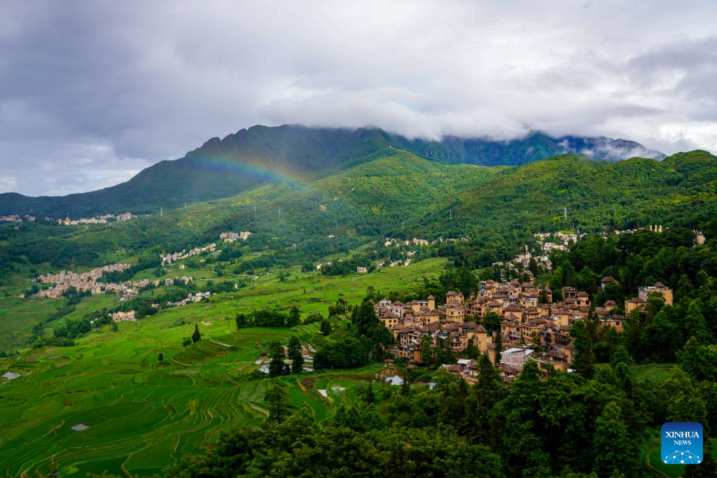 This photo taken on June 14, 2024 shows a view of Hani terraced fields in Yuanyang County of Honghe Hani and Yi Autonomous Prefecture, southwest China's Yunnan Province. (Xinhua/Wang Jingyi)