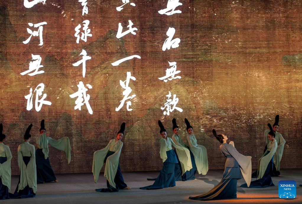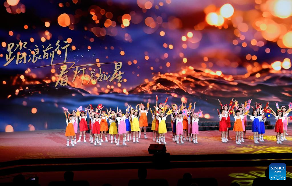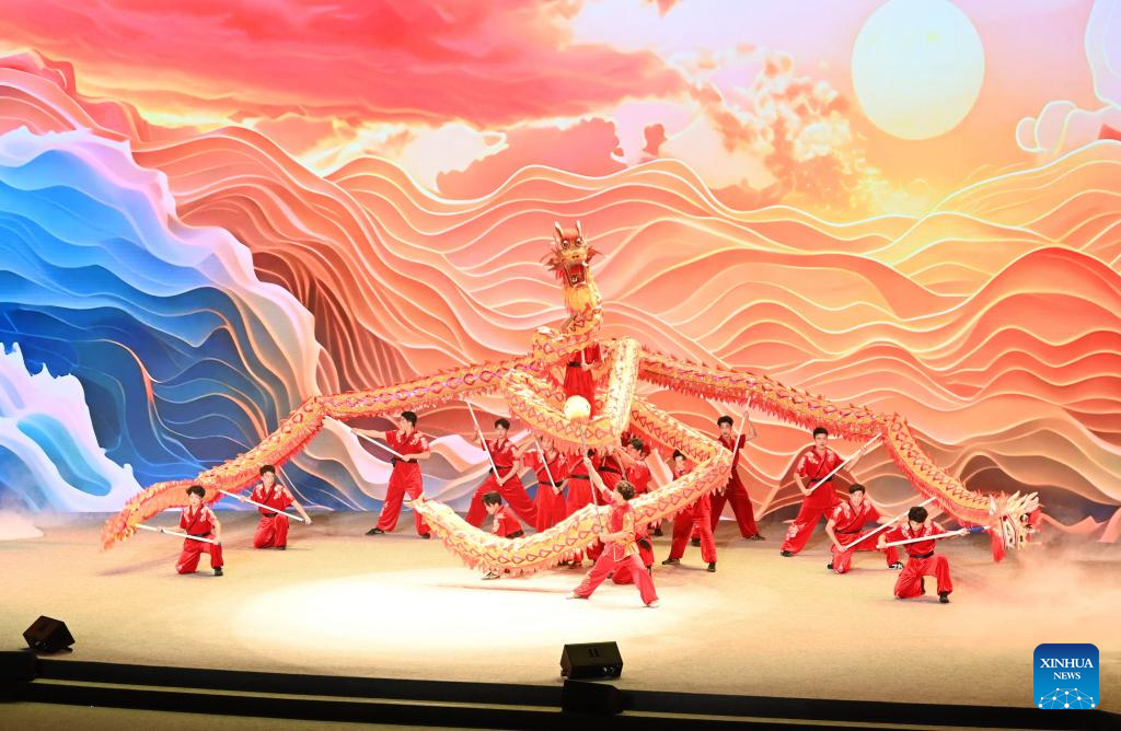 A performance is staged during the main meeting of the 16th Straits Forum in Xiamen, southeast China's Fujian Province, June 15, 2024. The main meeting of the 16th Straits Forum was held here on Saturday. (Xinhua/Wei Peiquan)