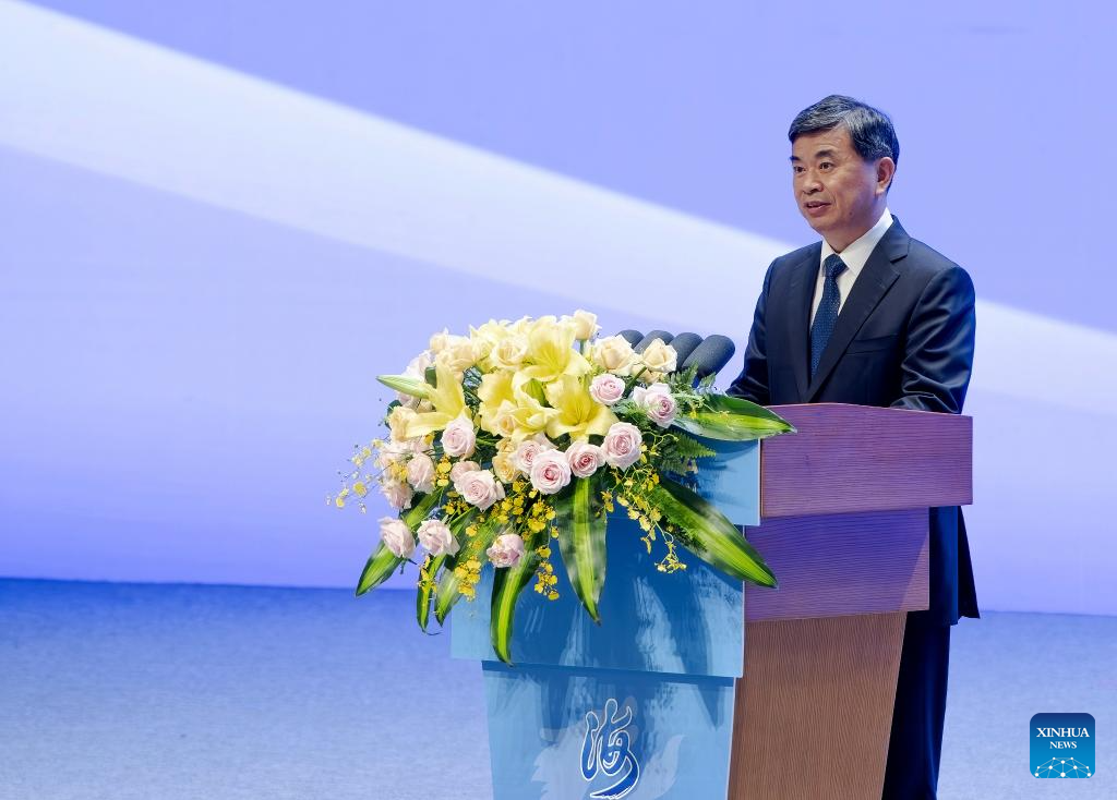Zhou Zuyi, secretary of the Communist Party of China (CPC) Fujian Provincial Committee, speaks during the main meeting of the 16th Straits Forum in Xiamen, southeast China's Fujian Province, June 15, 2024. The main meeting of the 16th Straits Forum was held here on Saturday. (Xinhua/Wei Peiquan)