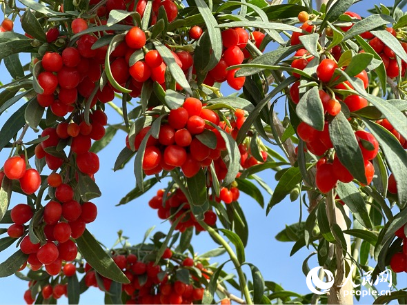 Photo shows goji berries at a planting base in Zhongwei, Ningxia Hui Autonomous Region. (Photo/People's Daily Online)