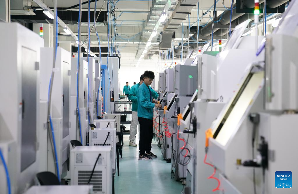 Staff members work at Liaoning Peacock Watch Co., Ltd. in Dandong City, northeast China's Liaoning Province, June 18, 2024. The watch industry is one of the traditional industries in Dandong City. In recent years, Dandong has vigorously promoted technological innovation and cultivated innovative enterprises, so as to upgrade traditional industries and develop high-tech manufacturing. (Xinhua/Fan Yuqing)