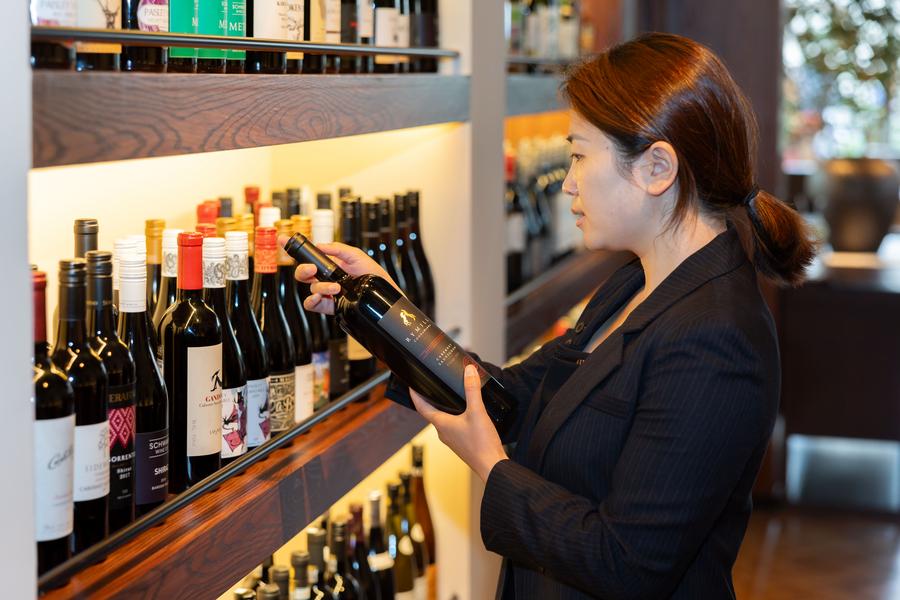 A customer selects Australian wine at a restaurant in Shanghai, east China, June 6, 2024. (Xinhua/Wang Xiang)
