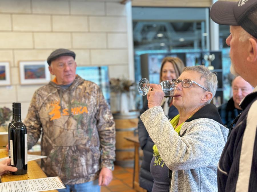 People taste wine at Rymill Coonawarra's cellar door in South Australia, on June 5, 2024. (Photo by Li Ting/Xinhua)