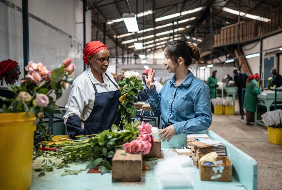 Huang Zinan, chairwoman of Hunan Xiyue Culture Media Co., Ltd., said her company, which cooperates with seven Kenyan flower farms including Tambuzi, sells 100,000 flowers monthly across 14 Chinese cities and exports to Russia and Australia.