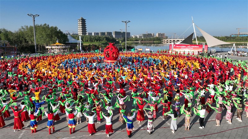 As performances of songs like "Today is a Festival," "China in the Lights,” and "Pomegranate Blossoms" were staged one after another, residents sang and danced along with the music, filling the air with joyous laughter.