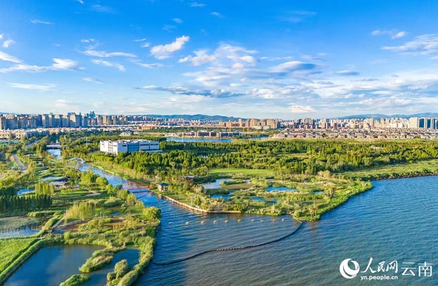 Photo taken on June 13, 2024 shows the view of wetlands along the Dianchi Lake in Kunming, capital city of southwest China’s Yunnan Province. (People’s Daily Online/Hu Zunhui)