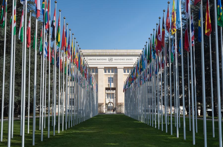 This photo taken on Feb. 29, 2024 shows an exterior view of the United Nations (UN) Office in Geneva, Switzerland. (Xinhua/Shi Song)