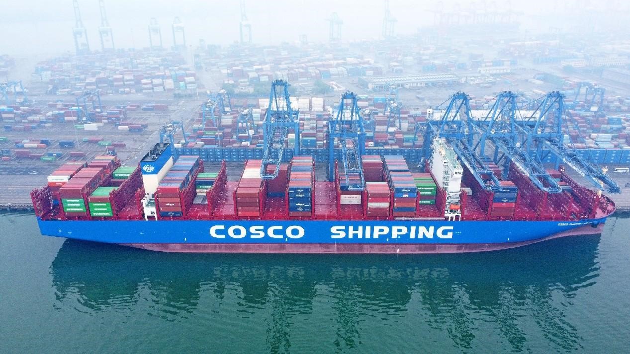 Tianjin Port launches a direct container shipping route to the east coast of South America, May 6, 2024. (People's Daily Online/Zhou Wei)