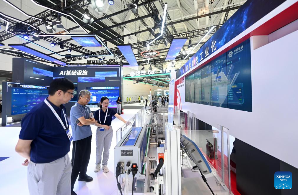 People visit the booth of China Unicom at the World Intelligence Expo 2024 in north China's Tianjin, June 20, 2024.