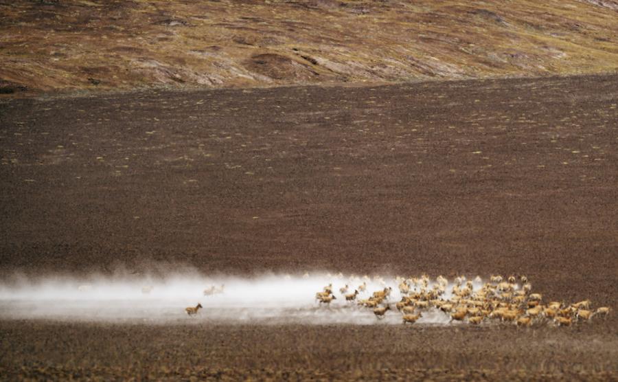 Female Tibetan antelopes are on migration to their birth-giving ground in Qiangtang National Nature Reserve in southwest China's Xizang Autonomous Region, June 13, 2024. (Xinhua/Jiang Fan)
