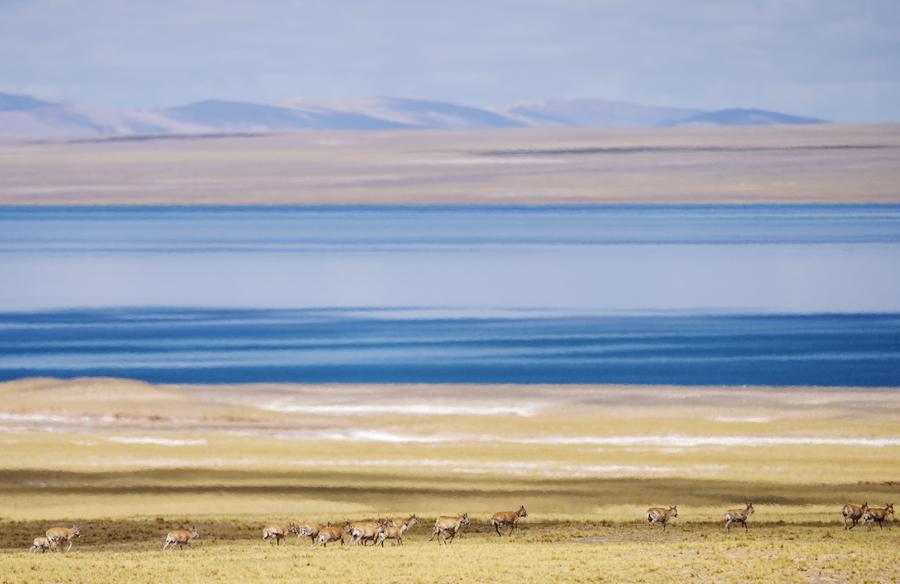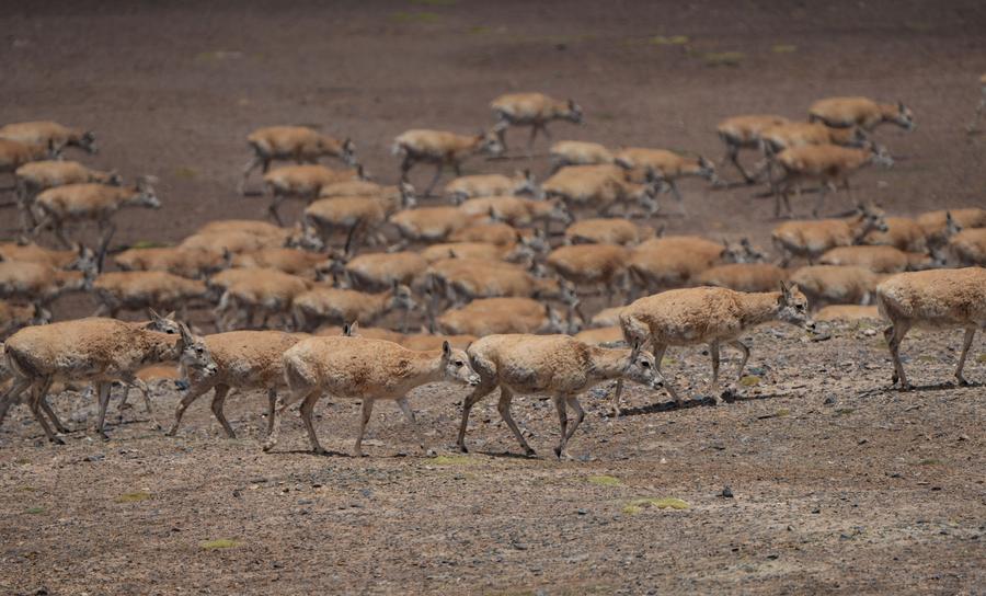 NAGQU, June 20 (Xinhua) -- Tens of thousands of pregnant Tibetan antelopes start their migration around May every year for birth-giving and would return with their calves in late July. Their natural enemies including wolves and bears are always there to ambush them.