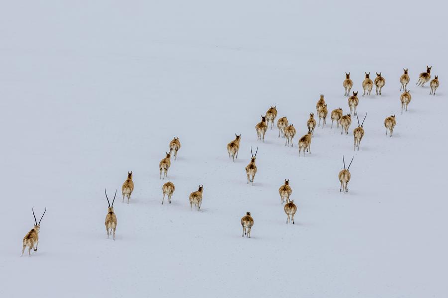 Under first-class state protection in China, the once-endangered Tibetan antelope is mostly found in the Xizang Autonomous Region, Qinghai Province, and the Xinjiang Uygur Autonomous Region. Their population has increased over the past three decades thanks to a ban on illegal hunting and measures implemented to improve their habitat.