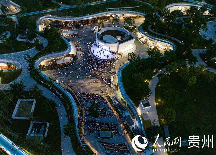 An aerial photo shows a roadside concert in Guanshanhu district, Guiyang, southwest China’s Guizhou Province. (People’s Daily Online/Yang Qian)