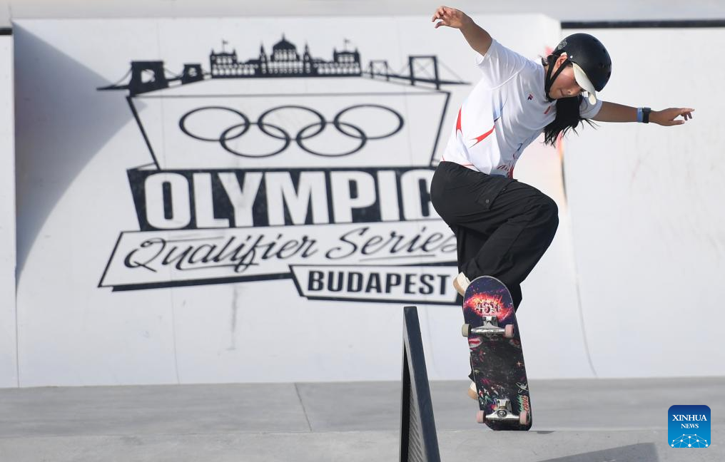 Zhang Yan of China competes during the women's street preliminaries of skateboarding at the Olympic Qualifier Series Budapest in Budapest, Hungary, June 21, 2024. (Xinhua/He Canling)
