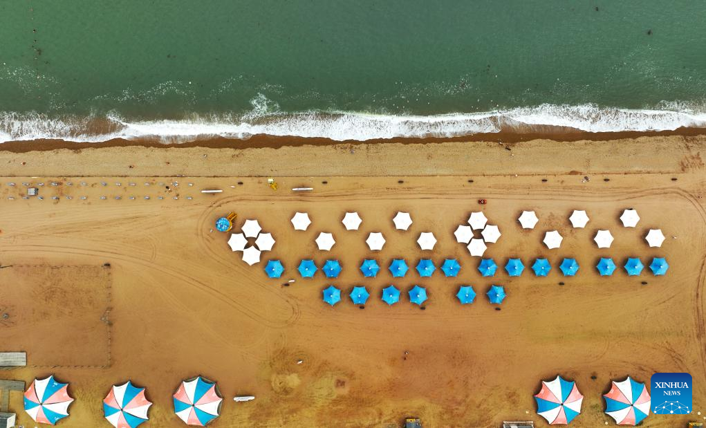 An aerial drone photo taken on June 17, 2024 shows the Fujiazhuang beach in Dalian, northeast China's Liaoning Province. (Xinhua/Yang Qing)