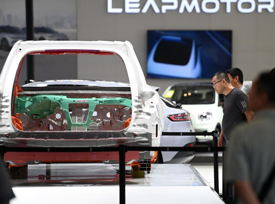 People visit the exhibition area of intelligent connected vehicles at the World Intelligence Expo 2024 in north China's Tianjin, June 22, 2024. (Xinhua/Zhao Zishuo)
