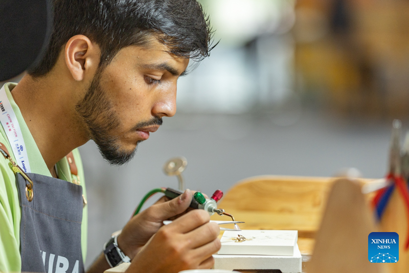 A contestant is pictured during a contest of the second Belt and Road International Skills Competition in southwest China's Chongqing Municipality on June 24, 2024. The second Belt and Road International Skills Competition kicked off at Chongqing International Expo Center here on Monday, attracting participants from 61 countries and regions. (Xinhua/Wang Quanchao)