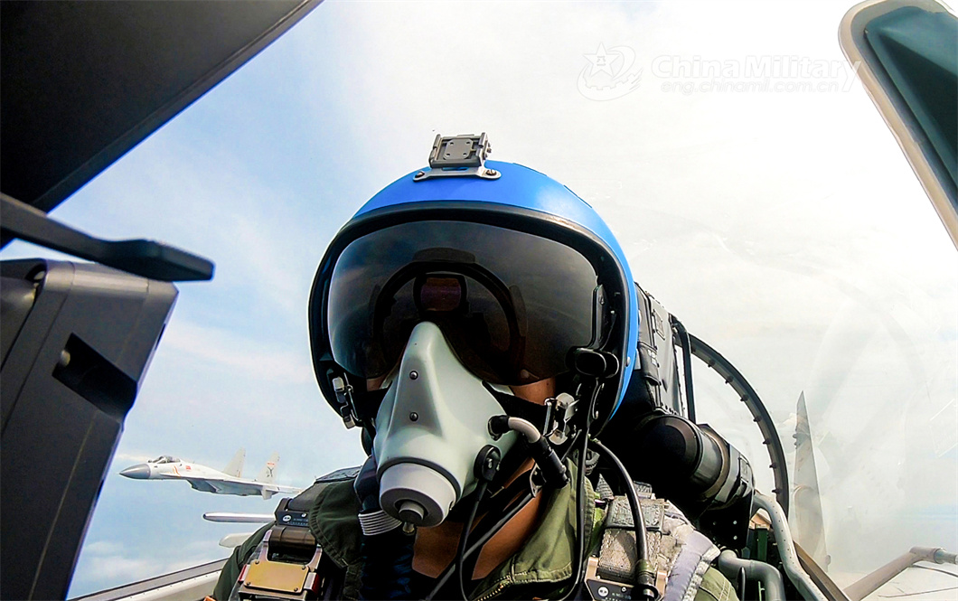 A pilot assigned to a regiment of the PLA Naval Aviation University flies a fighter jet in the sky during a flight training exercise on June 8, 2024. (eng.chinamil.com.cn/Photo by Xu Yinglong)