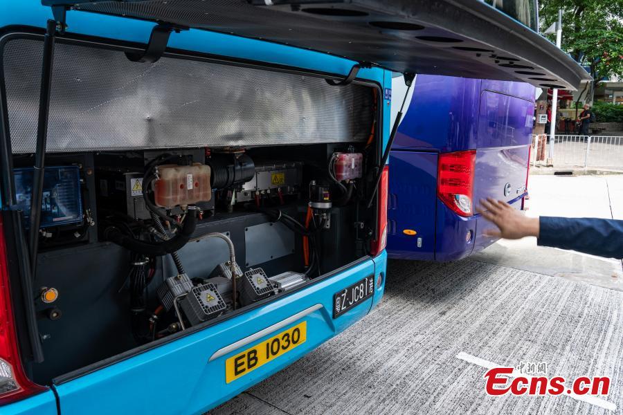 An inauguration ceremony for the operation of the first cross-border electric tourist coach between Hong Kong Special Administrative Region and Shenzhen City in Guangdong Province is held at a cross-boundary coach terminal in Sheung Shui, Hong Kong on June 24. (Photo: China News Service/Hou Yu)