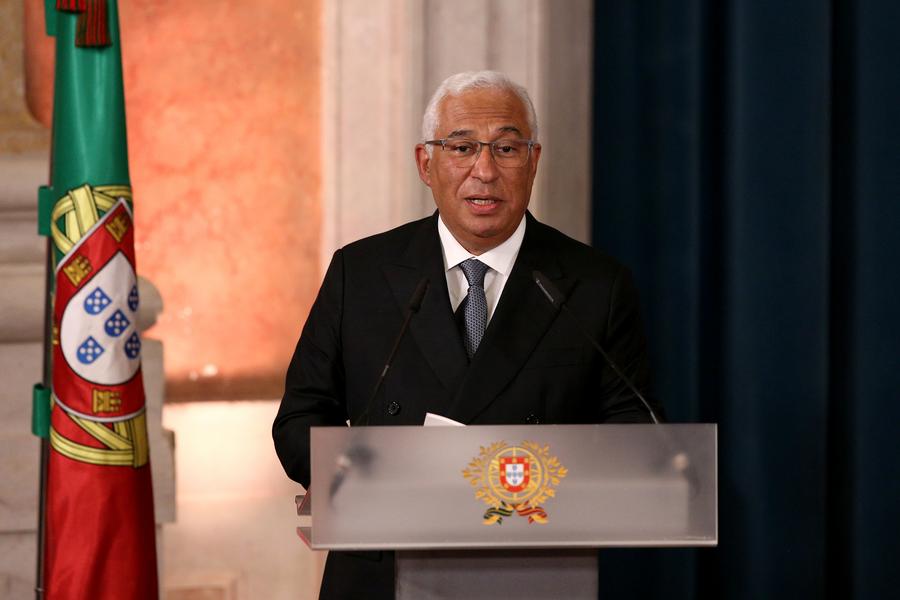 Then Portuguese Prime Minister Antonio Costa delivers a speech during the swearing-in ceremony of the new government at the Ajuda palace in Lisbon, Portugal, March 30, 2022. (Photo by Pedro Fiuza/Xinhua)