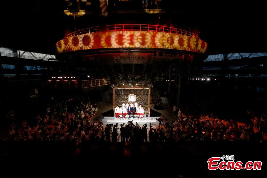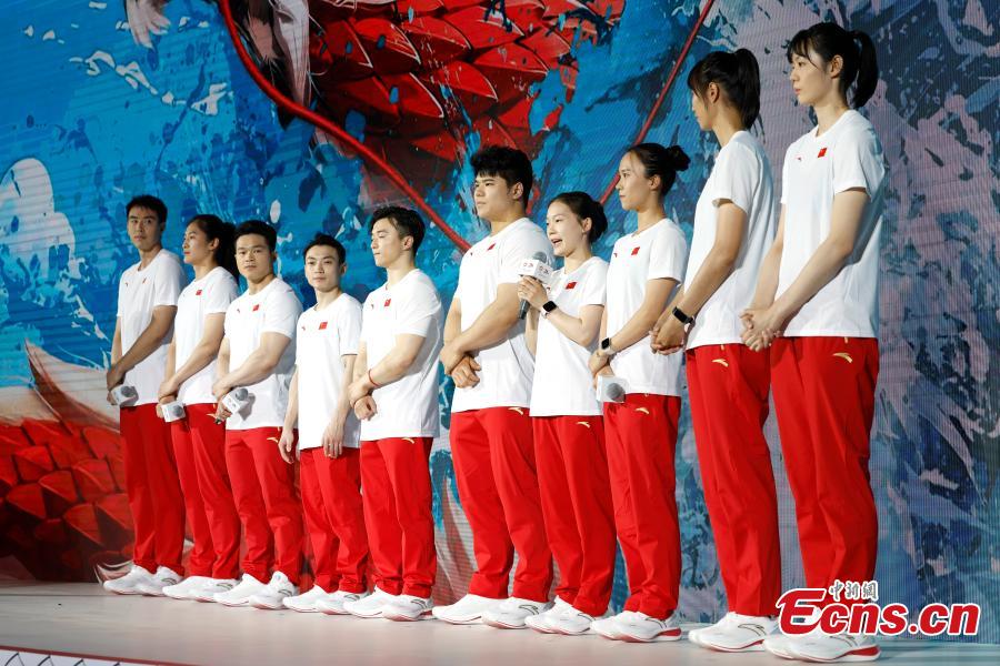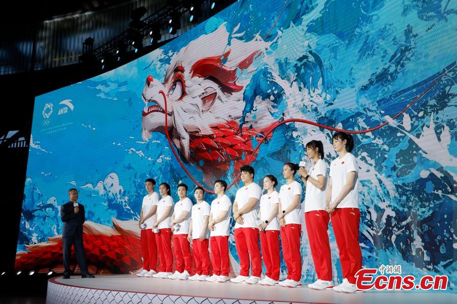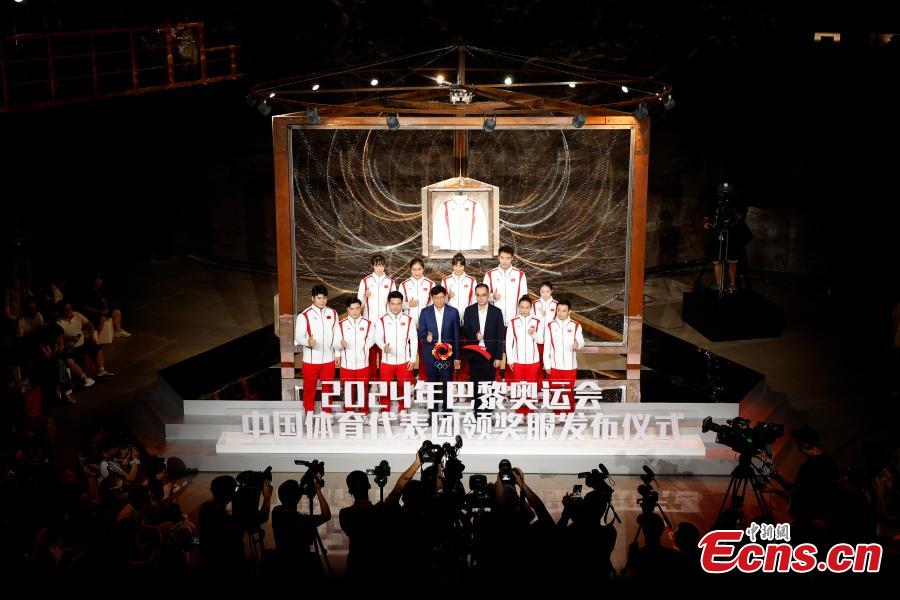 The medal ceremony uniform for the Chinese delegation at the Paris Olympic Games is unveiled on June 25 in Beijing. (Photo: China News Service/Chen Jimin)