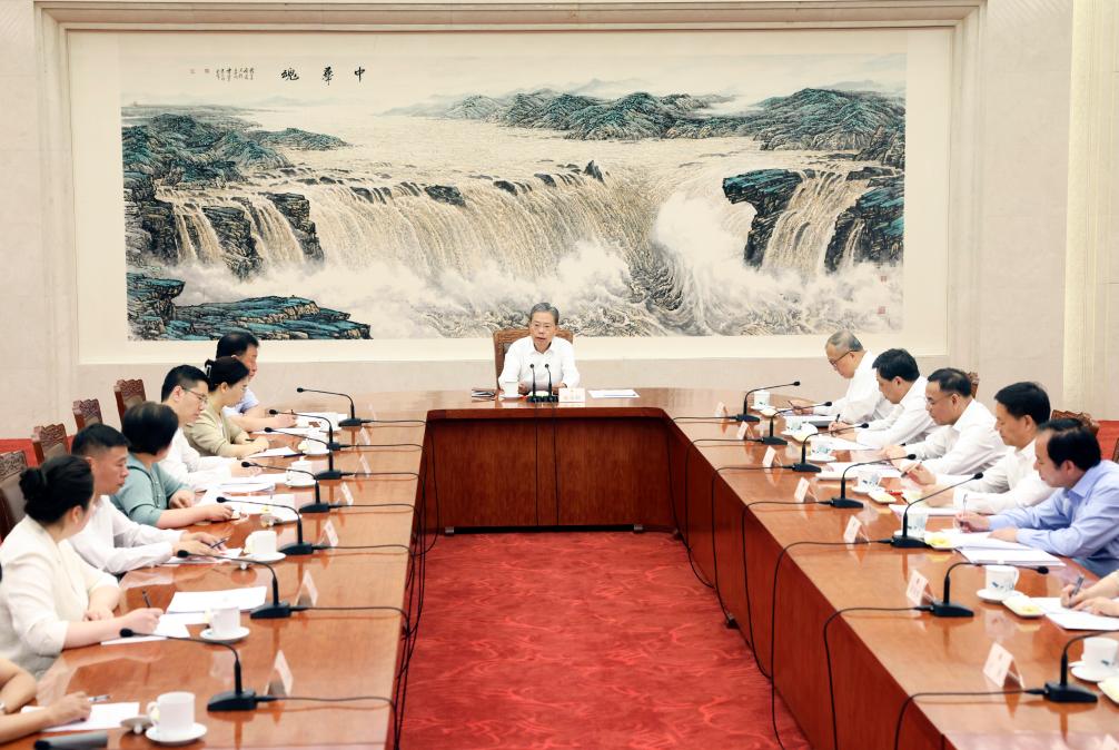 Zhao Leji, a member of the Standing Committee of the Political Bureau of the Communist Party of China Central Committee and chairman of the National People's Congress (NPC) Standing Committee, speaks at a lawmakers' symposium held on the sidelines of an NPC Standing Committee session, on June 26, 2024. (Xinhua/Liu Weibing)