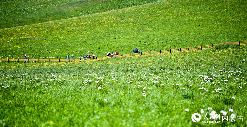 Tourists enjoy the picturesque view in the Ulgai Grassland in Xilingol League, north China’s Inner Mongolia Autonomous Region. (People’s Daily Online/Li Rui)