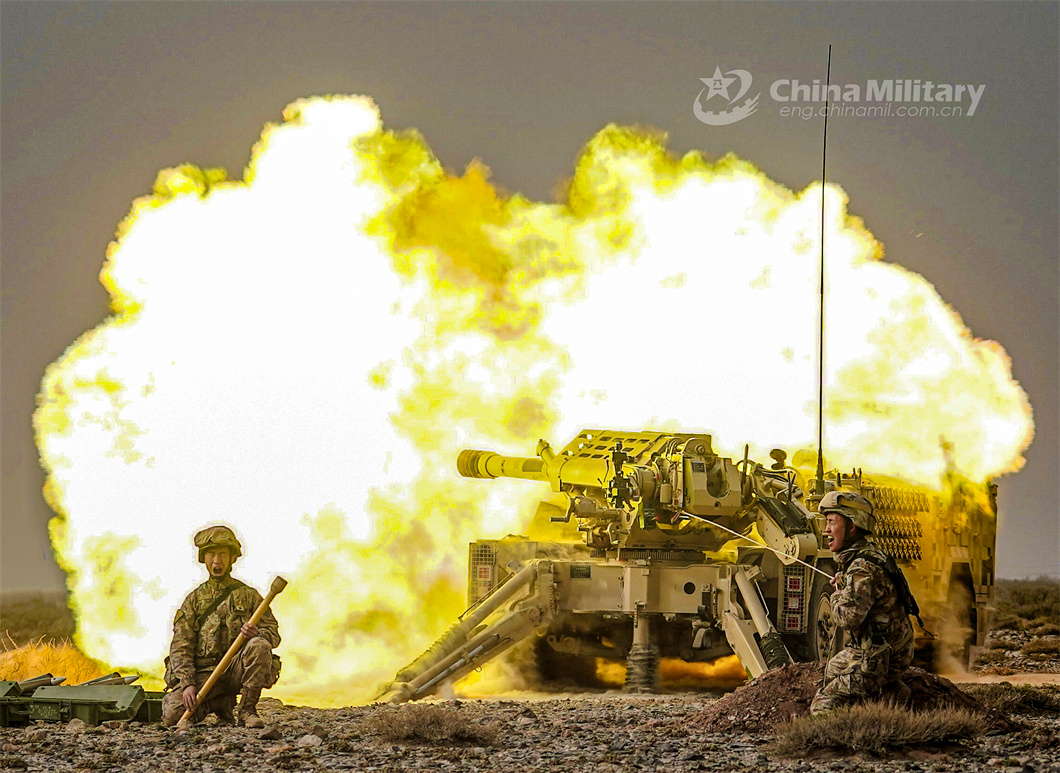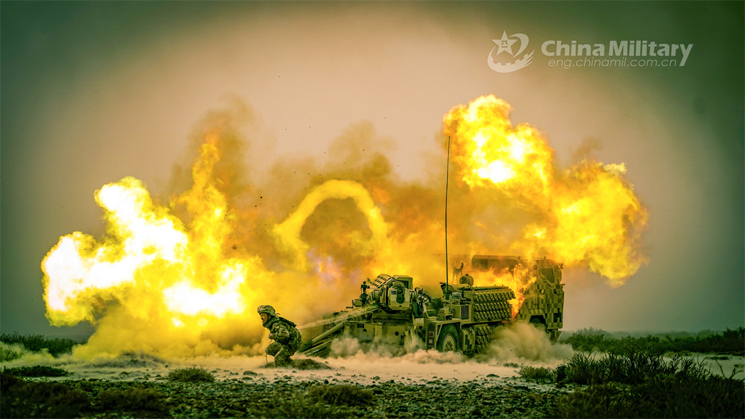 A vehicle-mounted howitzer attached to a howitzer unit of the PLA Army fires at targets during a live-fire training exercise on June 16, 2024. (eng.chinamil.com.cn/Photo by Zhang Huiqin)