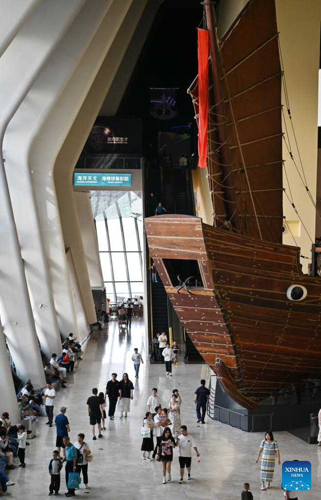 People visit the National Maritime Museum of China in Tianjin, north China, June 28, 2024. The National Maritime Museum of China is located in Tianjin Binhai New Area, covering an area of 15 hectares. As the summer vacation approaches, the number of visitors to the museum has increased. (Xinhua/Li Ran)