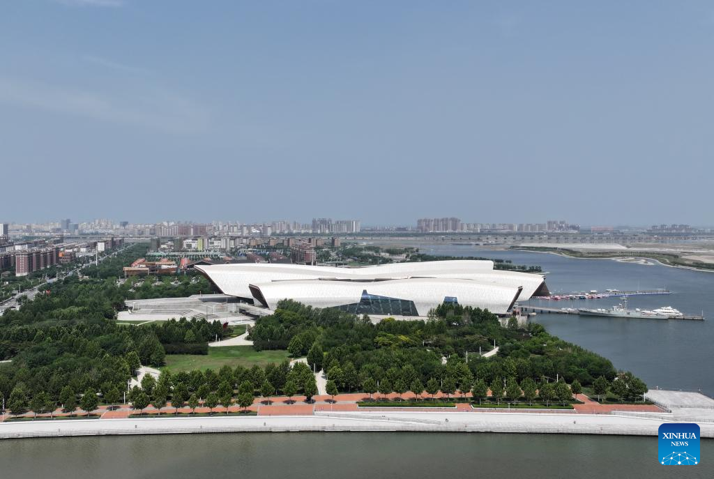 An aerial drone photo shows the National Maritime Museum of China in Tianjin, north China, June 28, 2024. The National Maritime Museum of China is located in Tianjin Binhai New Area, covering an area of 15 hectares. As the summer vacation approaches, the number of visitors to the museum has increased. (Xinhua/Li Ran)