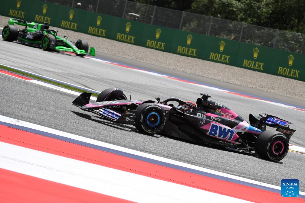 Alpine's French driver Esteban Ocon (front) competes during the first practice session of the Formula 1 Austrian Grand Prix in Spielberg, Austria, June 28, 2024. (Xinhua/He Canling)