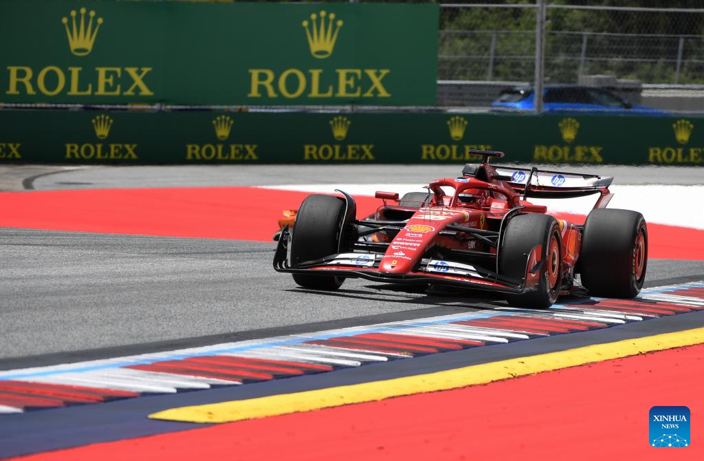 Ferrari's Monegasque driver Charles Leclerc competes during the first practice session of the Formula 1 Austrian Grand Prix in Spielberg, Austria, June 28, 2024. (Xinhua/He Canling)