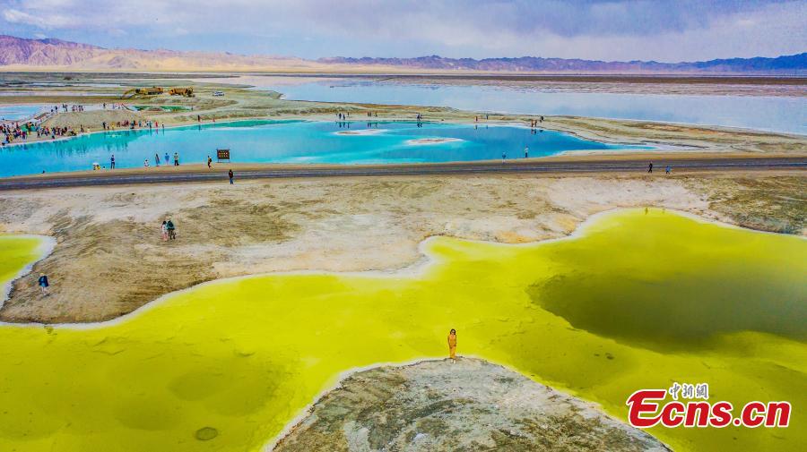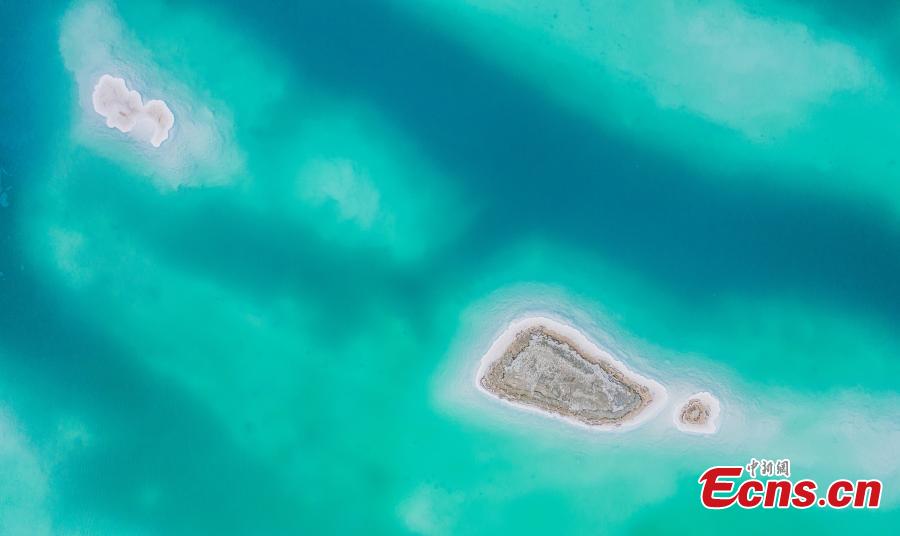 The aerial photo shows the stunning scenery of Emerald Lake in Dachaidan Town, Haixi Mongolian and Tibetan Autonomous Prefecture, Qinghai Province, June 29, 2024. (Photo: China News Service/Zhao Guangliang)