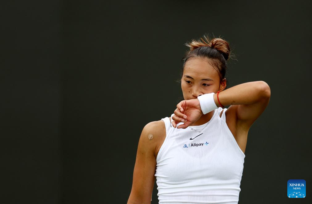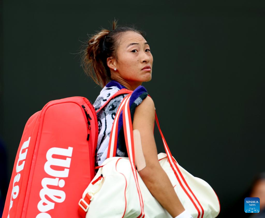 Zheng Qinwen leaves after the women's singles first round match between Zheng Qinwen of China and Sun Lulu of New Zealand at Wimbledon tennis Championship in London, Britain, on July 1, 2024. (Xinhua/Li Ying)