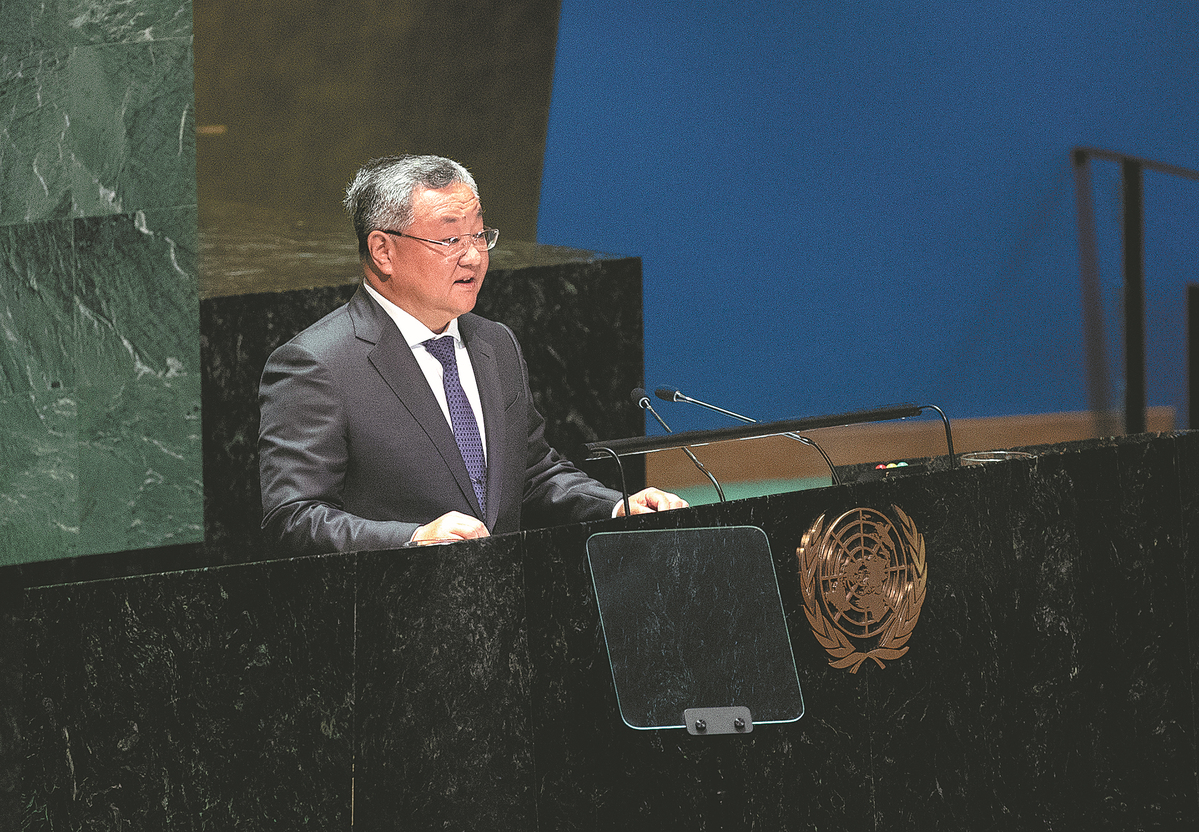 Fu Cong, China's permanent representative to the UN, introduces the draft resolution in New York on Monday. (WANG JIANGANG/XINHUA)