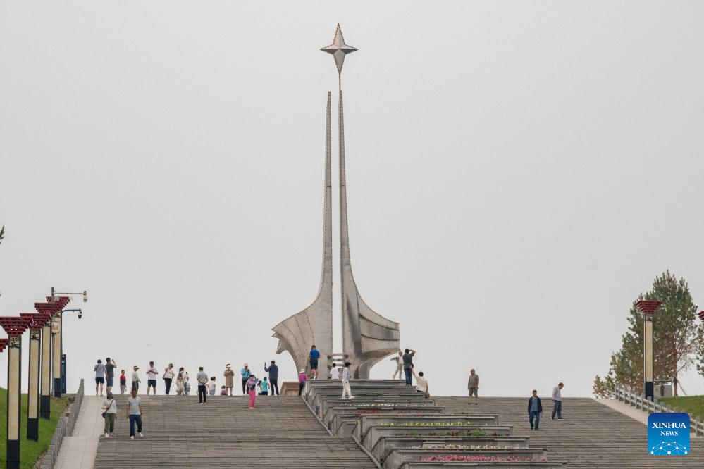 Tourists visit the polaris square in Mohe, northeast China's Heilongjiang Province, July 4, 2024. Lots of visitors travel to Mohe, China's northernmost city, in summer to enjoy some leisure time. In recent years, Mohe, focusing on its unique location, continues to improve its infrastructure and develop tourism products to attract more tourists in all seasons. (Xinhua/Xie Jianfei)