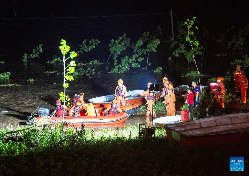 Rescuers work in Tuanzhou Township, Huarong County under Yueyang City, central China's Hunan Province, July 5, 2024. (Xinhua/Chen Sihan)