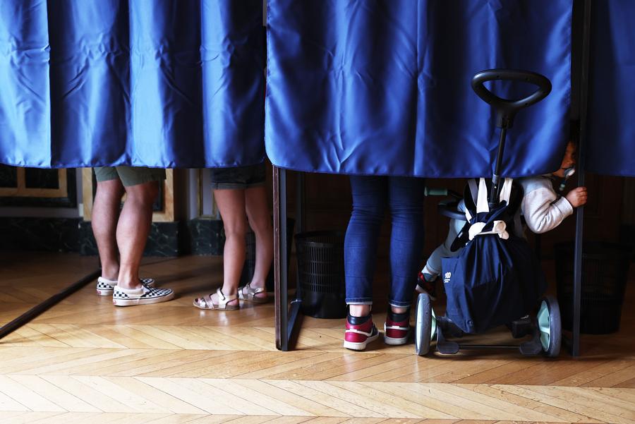 People cast ballots at a polling station in Clichy-La-Garenne, near Paris, France, July 7, 2024. (Xinhua/Gao Jing)