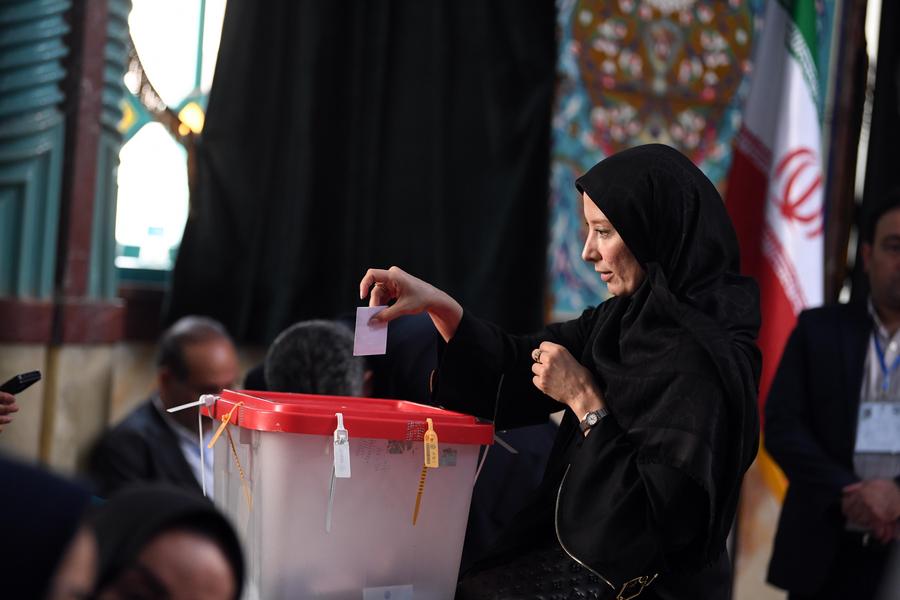 A voter casts her ballot at a polling station in Tehran, Iran, July 5, 2024. (Xinhua/Shadati)