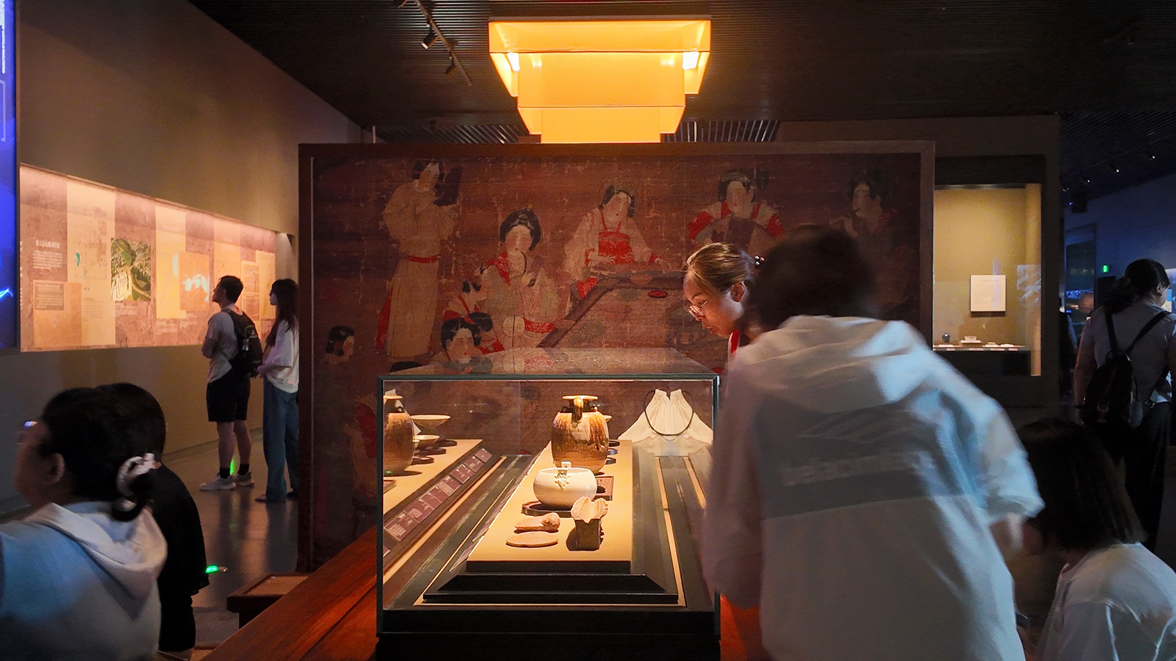 A photo taken on July 4, 2024, at the Grand Canal Museum of Beijing showcases the Tang Dynasty's flourishing tea culture, a time when the Grand Canal, constructed in the Sui and Tang dynasties, greatly facilitated the transportation of tea. As an integral part of everyday life, China's Grand Canal has not only promoted the exchange of goods between the north and south but has also played a significant role in nurturing and cultivating various aspects of traditional Chinese culture. (People’s Daily Online/Xue Yanyan)