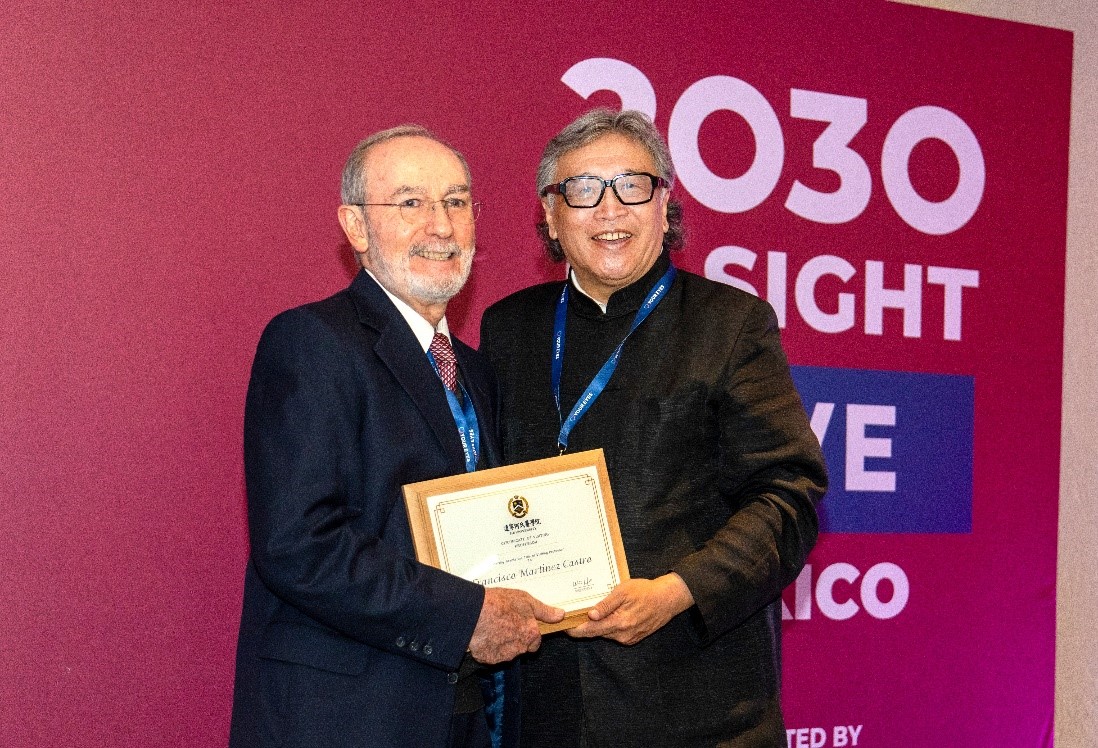 Professor He Wei presents the appointment letter to Dr. Francisco Martinez Castro, the President of IAPB Latin America. (Photo provided to People’s Daily Online)