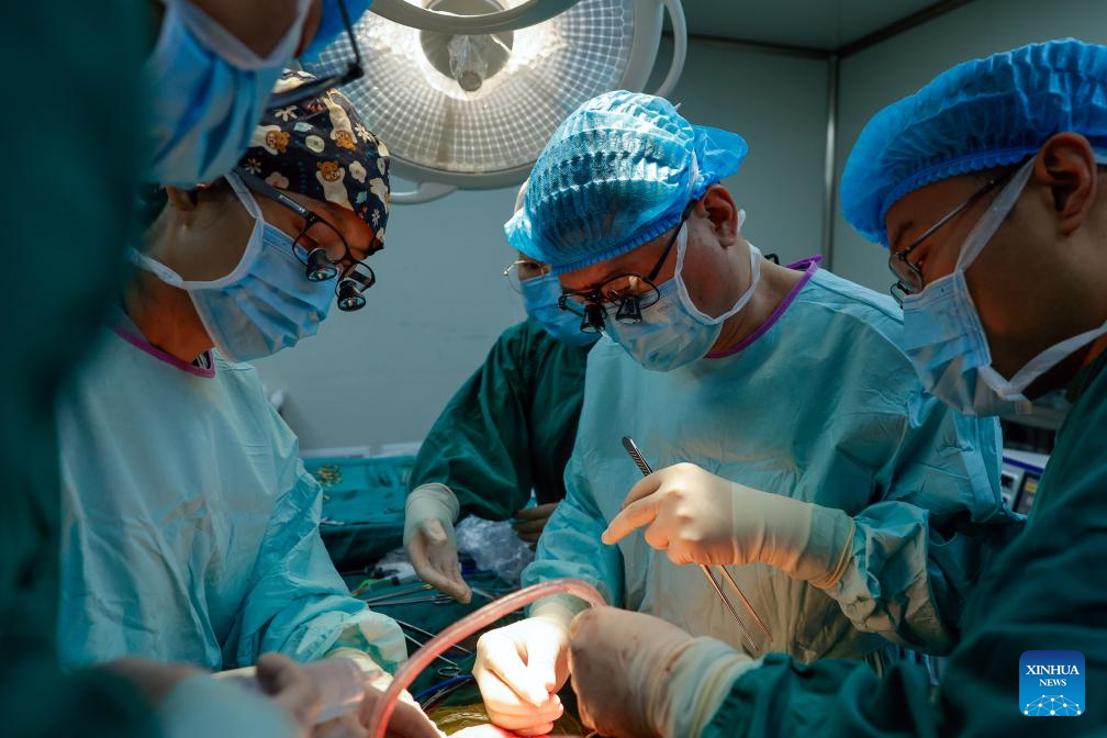 Experts perform a surgery on a patient with liver disease at a hospital in Kangding City of Garze Tibetan Autonomous Prefecture, southwest China's Sichuan Province, July 8, 2024.?(Xinhua/Shen Bohan)