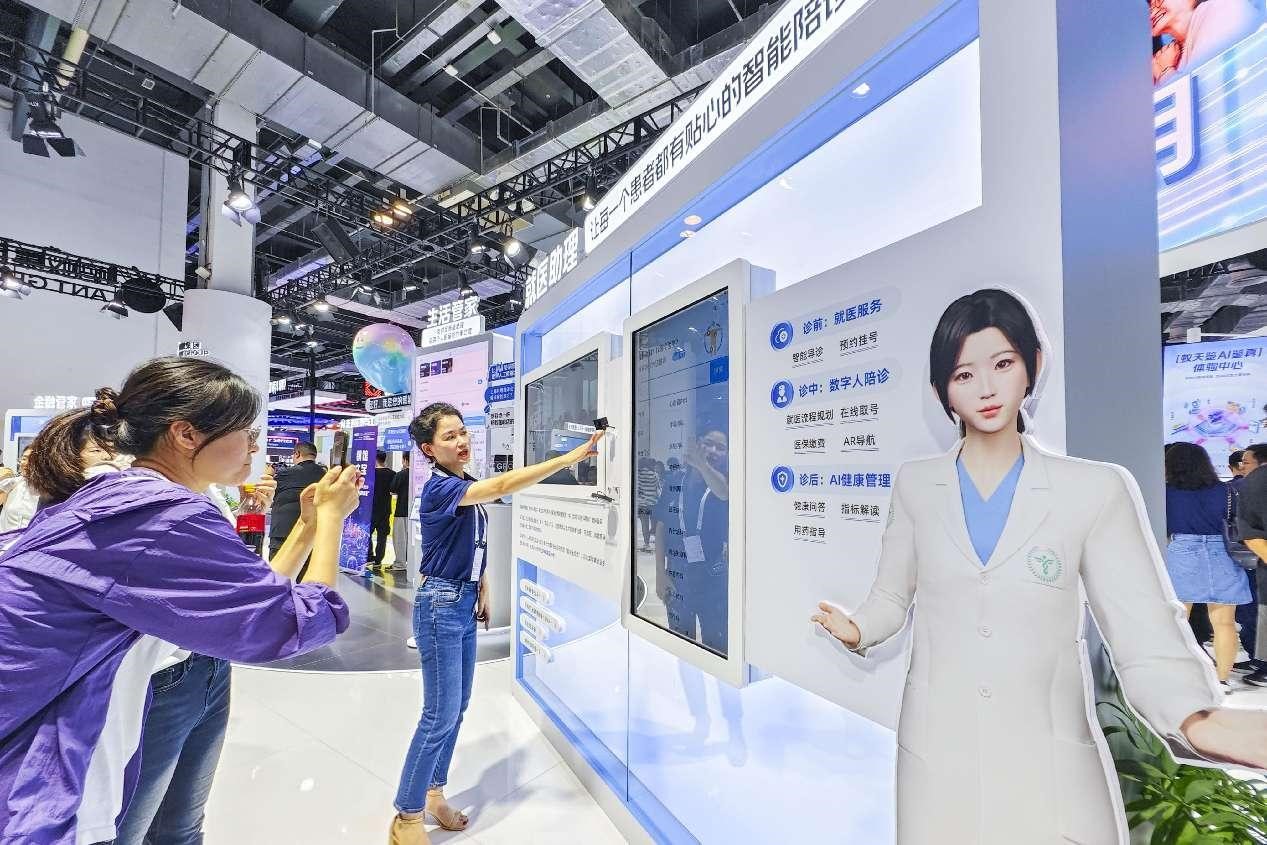 An AI-powered virtual patient companion is exhibited at the 2024 World AI Conference (WAIC) in Shanghai, east China, July 4, 2024. (People's Daily Online/Wang Chu)