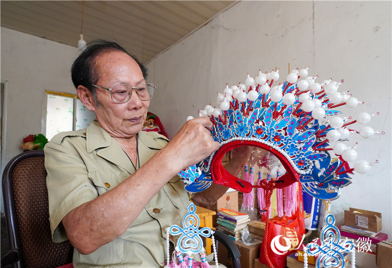 Shipai township in Huaining county, east China's Anhui Province is known as the "hometown of operas." Chan Yunqiu, a fifth-generation inheritor of the Shipai opera headdress making craft, has been making opera headdresses for over 60 years.