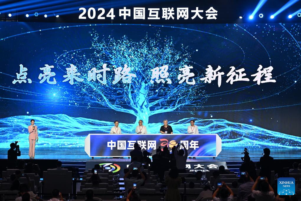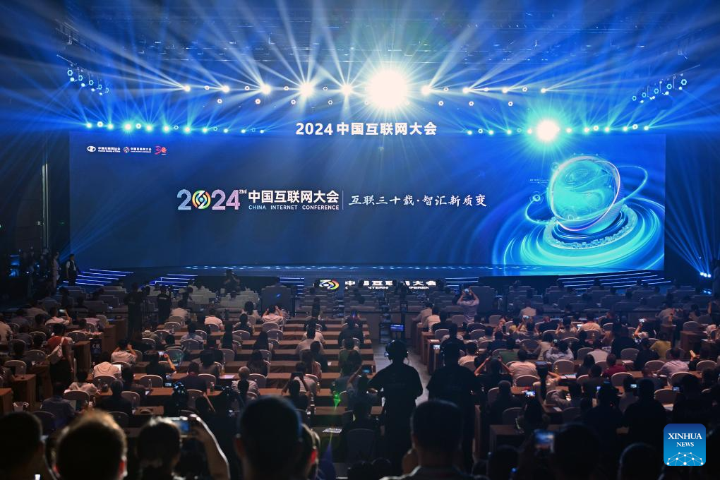 This photo taken on July 9, 2024 shows the opening ceremony of the 2024 China Internet Conference in Beijing, capital of China. The conference kicked off here on Tuesday and will last till July 11. (Xinhua/Li Xin)