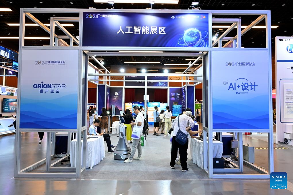 Participants visit the exhibition area of the 2024 China Internet Conference in Beijing, capital of China, July 9, 2024. The conference kicked off here on Tuesday and will last till July 11. (Xinhua/Li Xin)