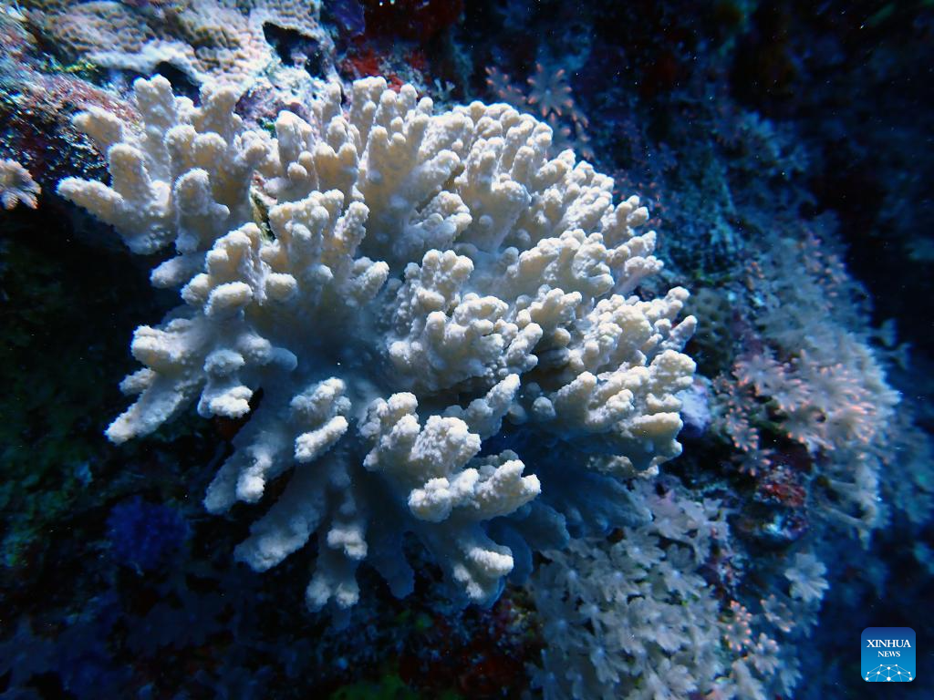 Blue coral is shown in the photo carried in a report titled "The Investigation and Assessment Report on Marine Ecology and Environment Status of Huangyan Dao".?(Xinhua)